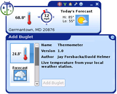 Get severe weather alerts and your live local temperature when you're not on the web. Includes one-click access to additional severe weather information on WeatherBug.com. Learn More
